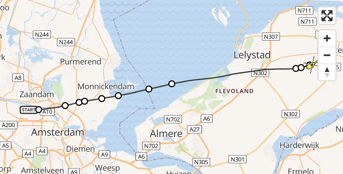 Op donderdag 29 mei 2025 om 18:52 is er een Traumahelikopter vertrokken van Amsterdam Heliport naar Dronten. Het gaat om de Traumahelikopter met registratienummer PH-DOC. De vlucht duurde 14 minuten. Het toestel heeft in die periode 59 kilometer afgelegd met een gemiddelde snelheid van 249 kilometer per uur op een maximale vlieghoogte van 236 meter.
