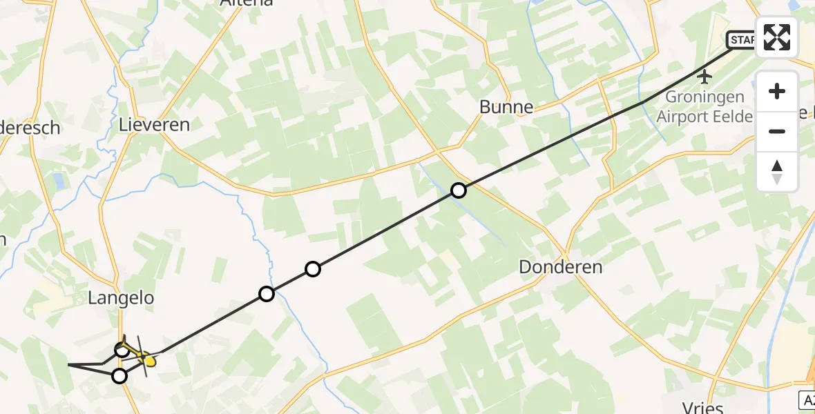 Op zaterdag 31 mei 2025 om 14:46 is er een Traumahelikopter vertrokken van Groningen Airport Eelde naar Langelo. Het gaat om de Traumahelikopter met registratienummer PH-MAA. De vlucht duurde 7 minuten. Het toestel heeft in die periode 13 kilometer afgelegd met een gemiddelde snelheid van 109 kilometer per uur op een maximale vlieghoogte van 122 meter.