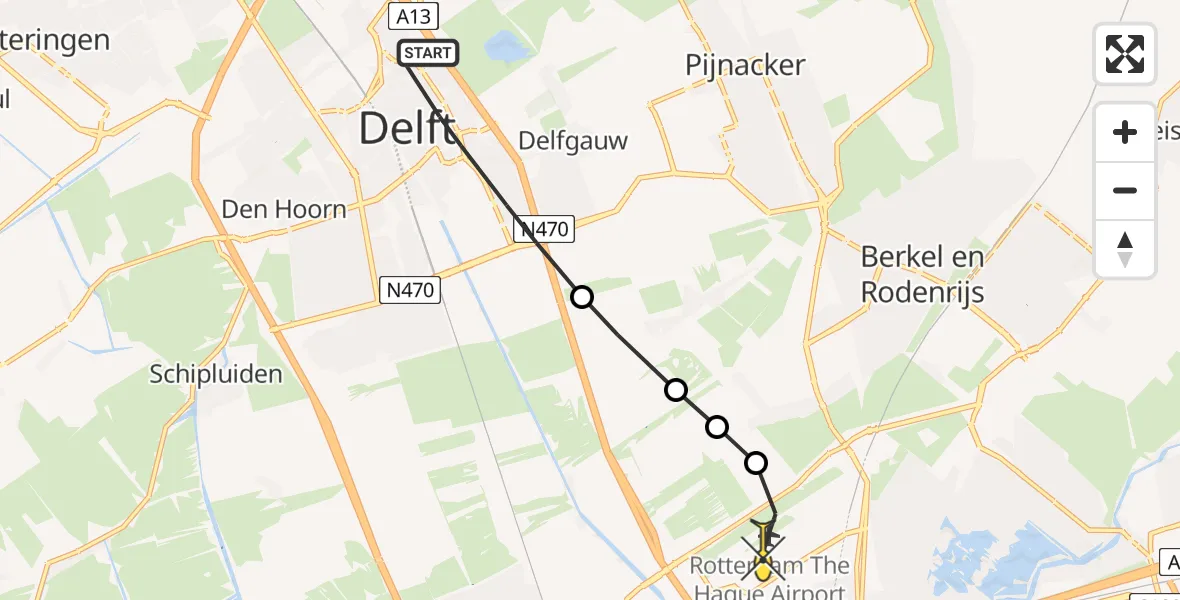 Op zaterdag 31 mei 2025 om 19:54 is er een Traumahelikopter vertrokken van Delft naar Rotterdam The Hague Airport. Het gaat om de Traumahelikopter met registratienummer PH-UMC. De vlucht duurde 5 minuten. Het toestel heeft in die periode 10 kilometer afgelegd met een gemiddelde snelheid van 116 kilometer per uur op een maximale vlieghoogte van 259 meter.