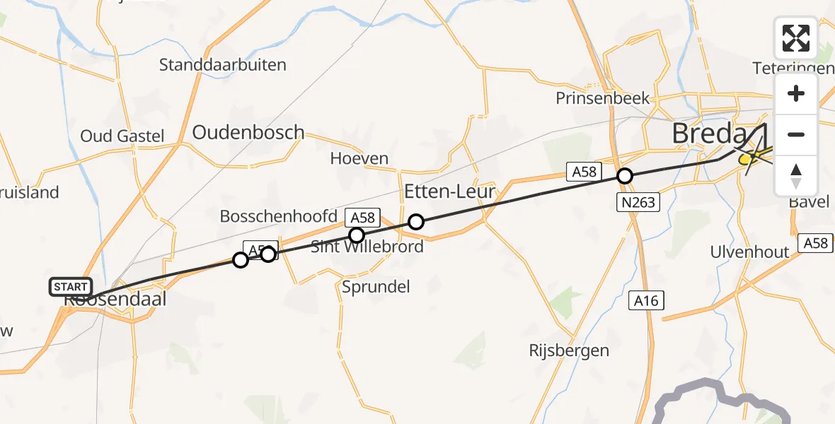 Op maandag 2 juni 2025 om 3:08 is er een Traumahelikopter vertrokken van Roosendaal naar Breda. Het gaat om de Traumahelikopter met registratienummer PH-UMC. De vlucht duurde 9 minuten. Het toestel heeft in die periode 29 kilometer afgelegd met een gemiddelde snelheid van 199 kilometer per uur op een maximale vlieghoogte van 343 meter.