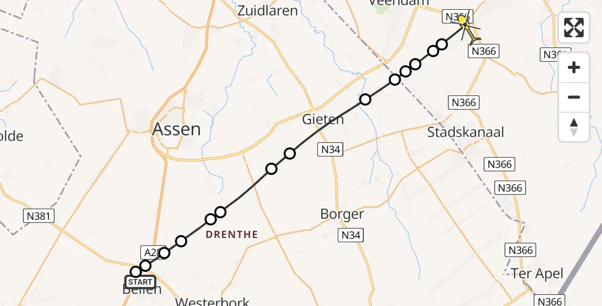 Op maandag 2 juni 2025 om 12:27 is er een Traumahelikopter vertrokken van Beilen naar Nieuwe Pekela. Het gaat om de Traumahelikopter met registratienummer PH-MAA. De vlucht duurde 11 minuten. Het toestel heeft in die periode 40 kilometer afgelegd met een gemiddelde snelheid van 217 kilometer per uur op een maximale vlieghoogte van 297 meter.