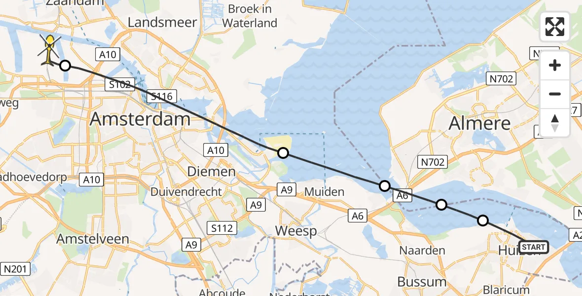 Op maandag 2 juni 2025 om 22:27 is er een Traumahelikopter vertrokken van Huizen naar Amsterdam Heliport. Het gaat om de Traumahelikopter met registratienummer PH-DOC. De vlucht duurde 12 minuten. Het toestel heeft in die periode 35 kilometer afgelegd met een gemiddelde snelheid van 181 kilometer per uur op een maximale vlieghoogte van 297 meter.