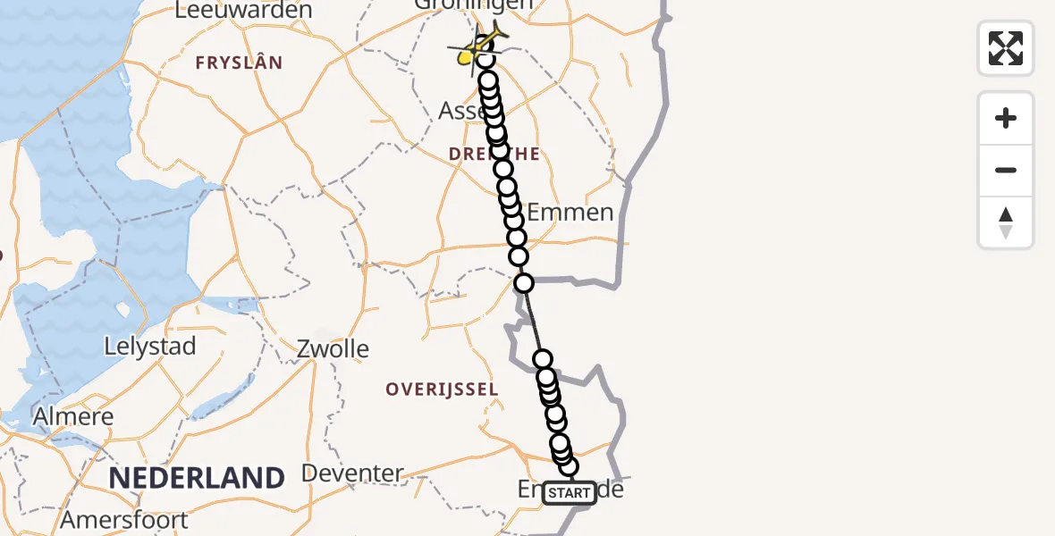 Op dinsdag 3 juni 2025 om 0:20 is er een Traumahelikopter vertrokken van Enschede naar Groningen Airport Eelde. Het gaat om de Traumahelikopter met registratienummer PH-MAA. De vlucht duurde 30 minuten. Het toestel heeft in die periode 106 kilometer afgelegd met een gemiddelde snelheid van 213 kilometer per uur op een maximale vlieghoogte van 381 meter.