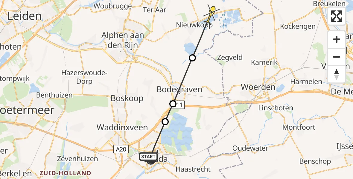 Op dinsdag 10 juni 2025 om 15:56 is er een Politiehelikopter vertrokken van Gouda naar Nieuwkoop. Het gaat om de Politiehelikopter met registratienummer PH-PXB. De vlucht duurde 18 minuten. Het toestel heeft in die periode 35 kilometer afgelegd met een gemiddelde snelheid van 119 kilometer per uur op een maximale vlieghoogte van 425 meter.
