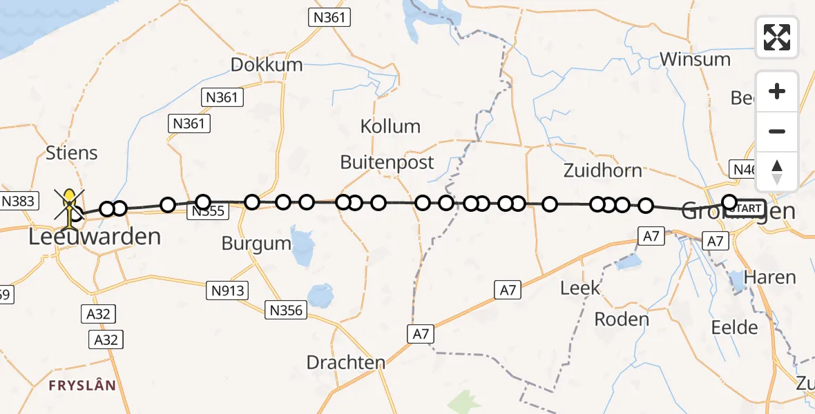 Op woensdag 11 juni 2025 om 8:24 is er een Ambulancehelikopter vertrokken van Universitair Medisch Centrum Groningen naar Vliegbasis Leeuwarden. Het gaat om de Ambulancehelikopter met registratienummer PH-HOW. De vlucht duurde 19 minuten. Het toestel heeft in die periode 56 kilometer afgelegd met een gemiddelde snelheid van 174 kilometer per uur op een maximale vlieghoogte van 251 meter.