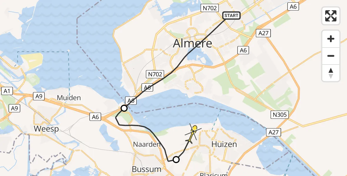 Op donderdag 12 juni 2025 om 21:24 is er een Politiehelikopter vertrokken van Almere naar Naarden. Het gaat om de Politiehelikopter met registratienummer PH-PXB. De vlucht duurde 10 minuten. Het toestel heeft in die periode 22 kilometer afgelegd met een gemiddelde snelheid van 138 kilometer per uur op een maximale vlieghoogte van 486 meter.