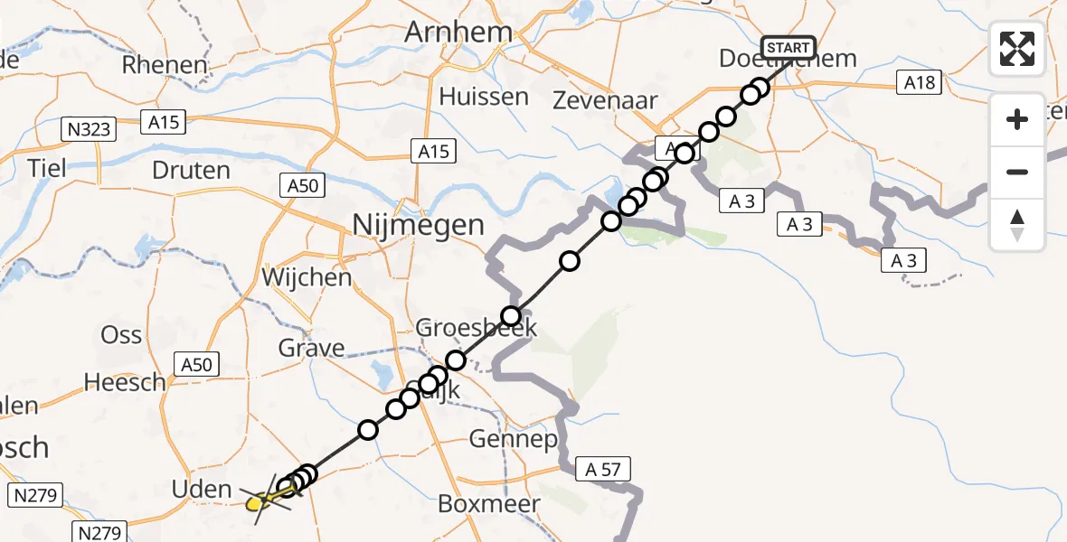 Op vrijdag 13 juni 2025 om 3:00 is er een Traumahelikopter vertrokken van Doetinchem naar Vliegbasis Volkel. Het gaat om de Traumahelikopter met registratienummer PH-LLN. De vlucht duurde 17 minuten. Het toestel heeft in die periode 55 kilometer afgelegd met een gemiddelde snelheid van 196 kilometer per uur op een maximale vlieghoogte van 434 meter.