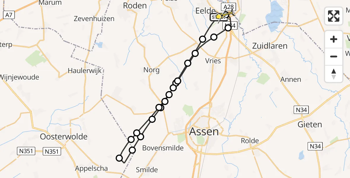 Op zondag 15 juni 2025 om 16:22 is er een Traumahelikopter vertrokken van Groningen Airport Eelde naar Eelde. Het gaat om de Traumahelikopter met registratienummer PH-MAA. De vlucht duurde 13 minuten. Het toestel heeft in die periode 48 kilometer afgelegd met een gemiddelde snelheid van 219 kilometer per uur op een maximale vlieghoogte van 206 meter.