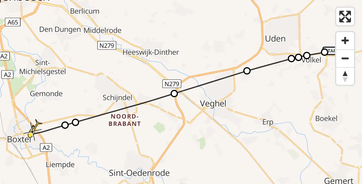 Op zondag 15 juni 2025 om 17:57 is er een Traumahelikopter vertrokken van Vliegbasis Volkel naar Boxtel. Het gaat om de Traumahelikopter met registratienummer PH-LLN. De vlucht duurde 8 minuten. Het toestel heeft in die periode 25 kilometer afgelegd met een gemiddelde snelheid van 185 kilometer per uur op een maximale vlieghoogte van 122 meter.