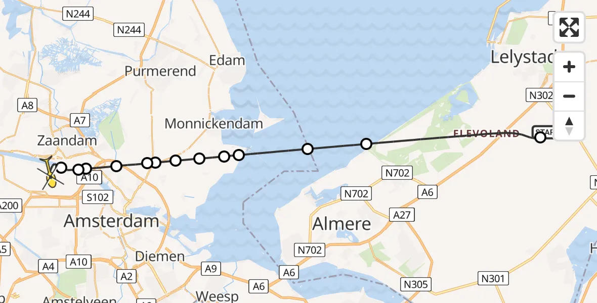 Routekaart van de vlucht: Lifeliner 1 naar Amsterdam Heliport, Meerkoetentocht