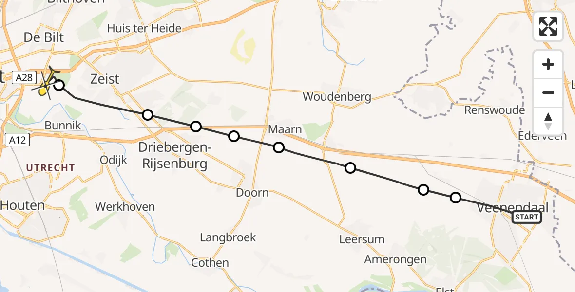 Op maandag 16 juni 2025 om 15:07 is er een Traumahelikopter vertrokken van Veenendaal naar Universitair Medisch Centrum Utrecht. Het gaat om de Traumahelikopter met registratienummer PH-HVB. De vlucht duurde 10 minuten. Het toestel heeft in die periode 28 kilometer afgelegd met een gemiddelde snelheid van 166 kilometer per uur op een maximale vlieghoogte van 190 meter.