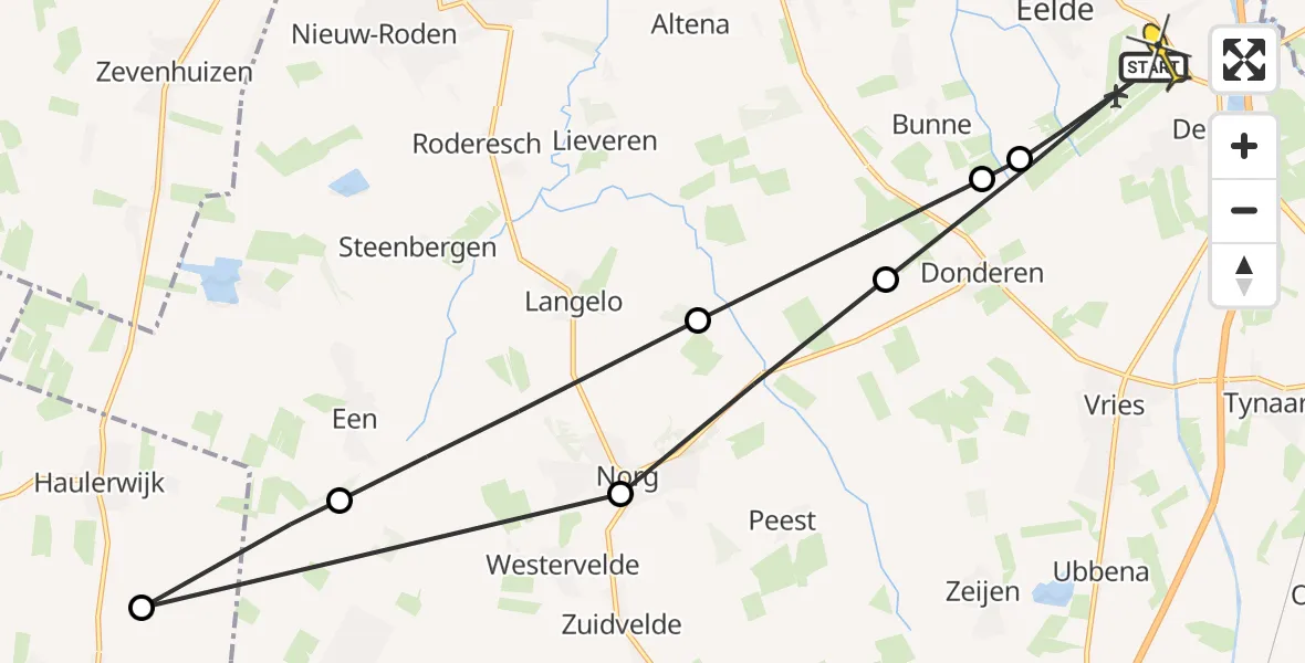 Op maandag 16 juni 2025 om 19:15 is er een Traumahelikopter vertrokken van Groningen Airport Eelde naar Groningen Airport Eelde. Het gaat om de Traumahelikopter met registratienummer PH-MAA. De vlucht duurde 12 minuten. Het toestel heeft in die periode 39 kilometer afgelegd met een gemiddelde snelheid van 189 kilometer per uur op een maximale vlieghoogte van 122 meter.