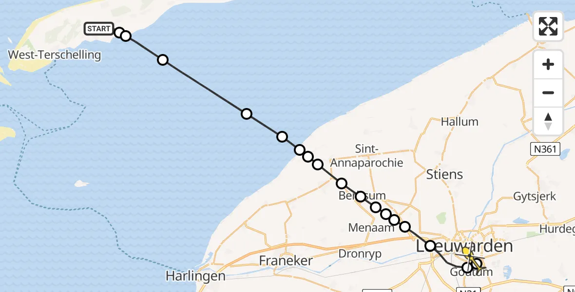 Op woensdag 18 juni 2025 om 15:49 is er een Ambulancehelikopter vertrokken van Midsland naar Leeuwarden. Het gaat om de Ambulancehelikopter met registratienummer PH-HOW. De vlucht duurde 13 minuten. Het toestel heeft in die periode 43 kilometer afgelegd met een gemiddelde snelheid van 198 kilometer per uur op een maximale vlieghoogte van 282 meter.