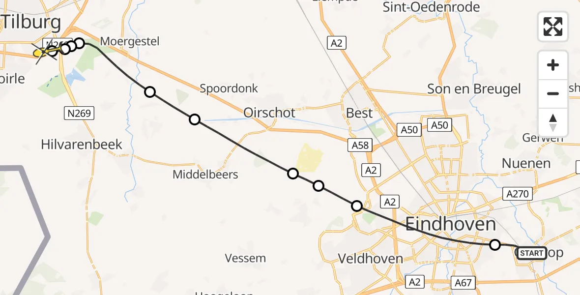 Op woensdag 18 juni 2025 om 20:56 is er een Traumahelikopter vertrokken van Geldrop naar Tilburg. Het gaat om de Traumahelikopter met registratienummer PH-LLN. De vlucht duurde 12 minuten. Het toestel heeft in die periode 35 kilometer afgelegd met een gemiddelde snelheid van 178 kilometer per uur op een maximale vlieghoogte van 229 meter.