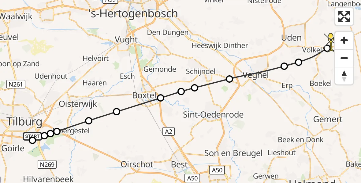 Op woensdag 18 juni 2025 om 21:34 is er een Traumahelikopter vertrokken van Tilburg naar Vliegbasis Volkel. Het gaat om de Traumahelikopter met registratienummer PH-LLN. De vlucht duurde 14 minuten. Het toestel heeft in die periode 44 kilometer afgelegd met een gemiddelde snelheid van 193 kilometer per uur op een maximale vlieghoogte van 236 meter.