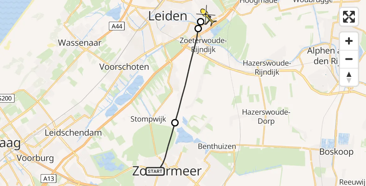 Op donderdag 19 juni 2025 om 16:16 is er een Traumahelikopter vertrokken van Zoetermeer naar Leiderdorp. Het gaat om de Traumahelikopter met registratienummer PH-HVB. De vlucht duurde 8 minuten. Het toestel heeft in die periode 13 kilometer afgelegd met een gemiddelde snelheid van 98 kilometer per uur op een maximale vlieghoogte van 137 meter.