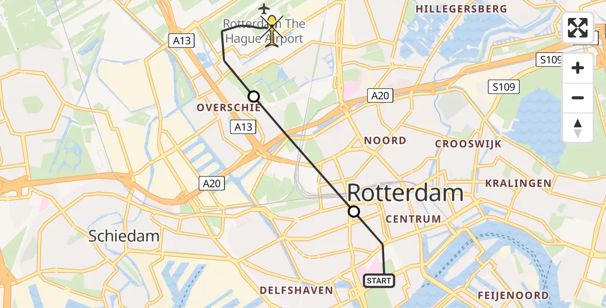 Op zaterdag 21 juni 2025 om 5:44 is er een Traumahelikopter vertrokken van Erasmus MC naar Rotterdam The Hague Airport. Het gaat om de Traumahelikopter met registratienummer PH-HVB. De vlucht duurde 5 minuten. Het toestel heeft in die periode 7 kilometer afgelegd met een gemiddelde snelheid van 90 kilometer per uur op een maximale vlieghoogte van 206 meter.