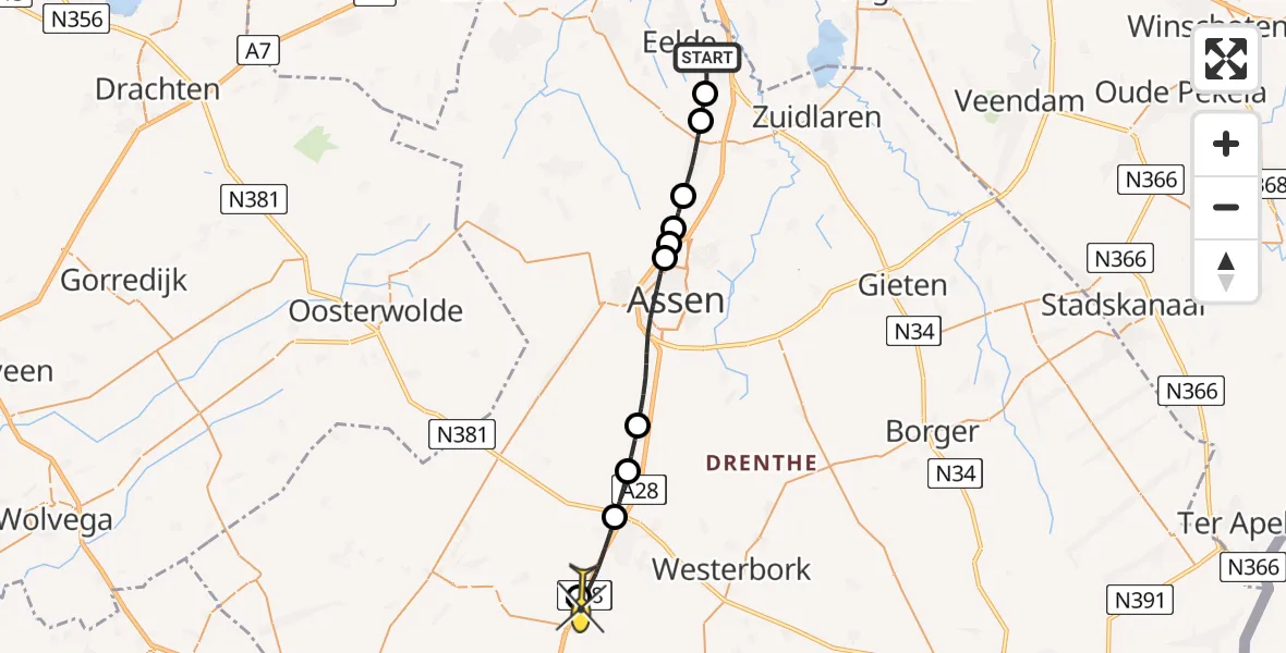 Op zaterdag 21 juni 2025 om 6:41 is er een Traumahelikopter vertrokken van Groningen Airport Eelde naar Spier. Het gaat om de Traumahelikopter met registratienummer PH-MAA. De vlucht duurde 10 minuten. Het toestel heeft in die periode 34 kilometer afgelegd met een gemiddelde snelheid van 199 kilometer per uur op een maximale vlieghoogte van 145 meter.