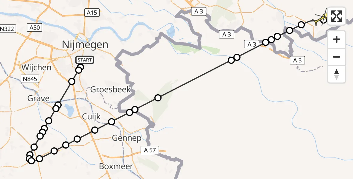 Op zondag 22 juni 2025 om 3:54 is er een Traumahelikopter vertrokken van Radboud Universitair Medisch Centrum naar De Heurne. Het gaat om de Traumahelikopter met registratienummer PH-LLN. De vlucht duurde 23 minuten. Het toestel heeft in die periode 81 kilometer afgelegd met een gemiddelde snelheid van 213 kilometer per uur op een maximale vlieghoogte van 366 meter.