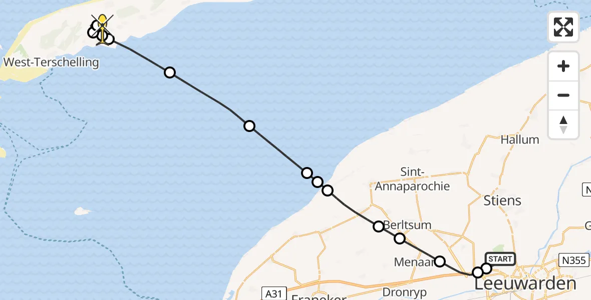 Op zondag 22 juni 2025 om 13:46 is er een Ambulancehelikopter vertrokken van Vliegbasis Leeuwarden naar Midsland. Het gaat om de Ambulancehelikopter met registratienummer PH-OOP. De vlucht duurde 15 minuten. Het toestel heeft in die periode 41 kilometer afgelegd met een gemiddelde snelheid van 168 kilometer per uur op een maximale vlieghoogte van 312 meter.