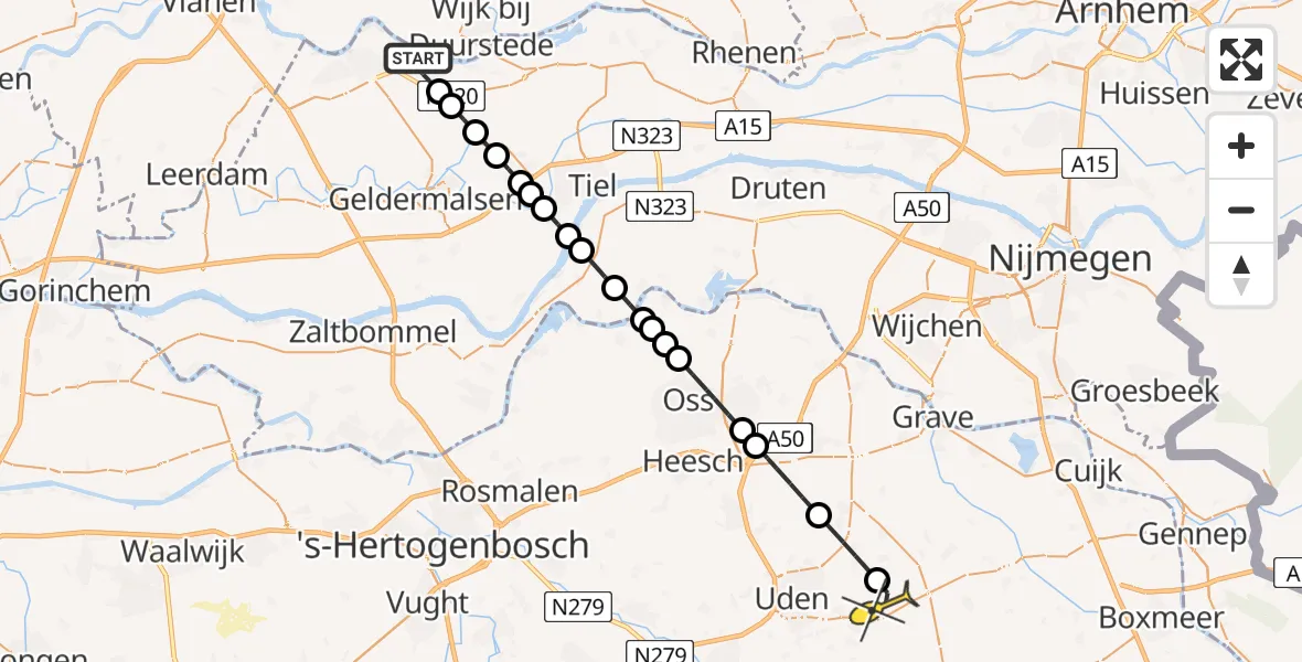 Op zondag 22 juni 2025 om 14:49 is er een Traumahelikopter vertrokken van Beusichem naar Vliegbasis Volkel. Het gaat om de Traumahelikopter met registratienummer PH-LLN. De vlucht duurde 11 minuten. Het toestel heeft in die periode 45 kilometer afgelegd met een gemiddelde snelheid van 239 kilometer per uur op een maximale vlieghoogte van 312 meter.