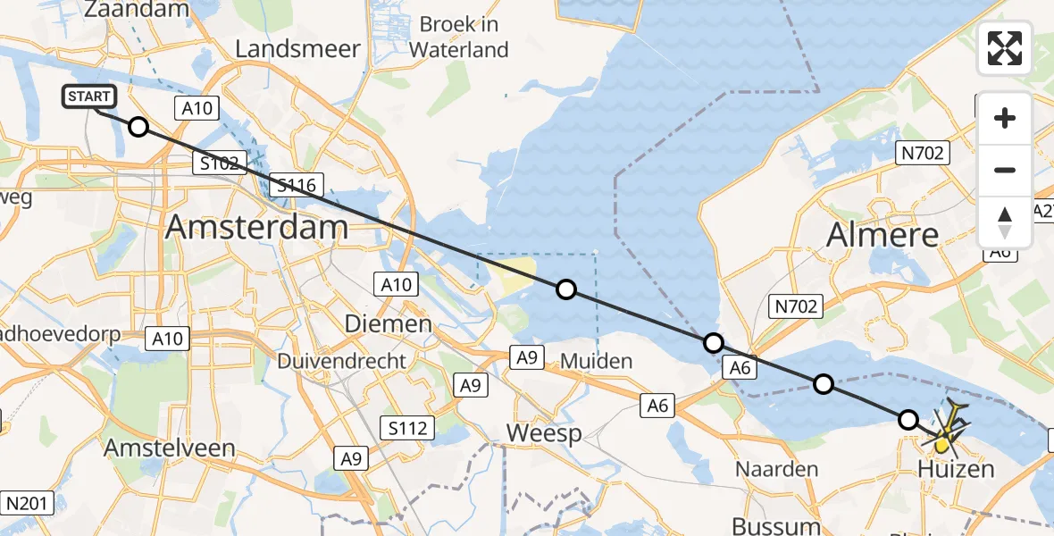Op zondag 22 juni 2025 om 16:18 is er een Traumahelikopter vertrokken van Amsterdam Heliport naar Huizen. Het gaat om de Traumahelikopter met registratienummer PH-DOC. De vlucht duurde 10 minuten. Het toestel heeft in die periode 35 kilometer afgelegd met een gemiddelde snelheid van 217 kilometer per uur op een maximale vlieghoogte van 251 meter.