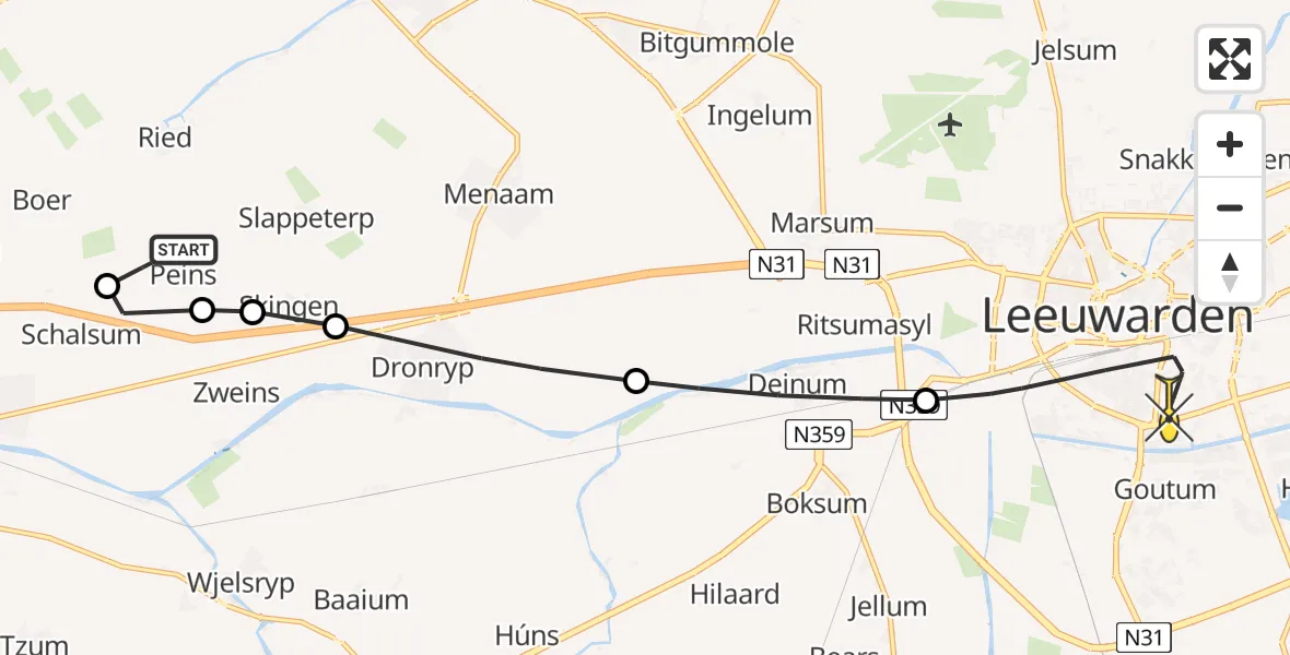 Op zondag 22 juni 2025 om 16:57 is er een Traumahelikopter vertrokken van Peins naar Leeuwarden. Het gaat om de Traumahelikopter met registratienummer PH-MAA. De vlucht duurde 6 minuten. Het toestel heeft in die periode 17 kilometer afgelegd met een gemiddelde snelheid van 181 kilometer per uur op een maximale vlieghoogte van 267 meter.