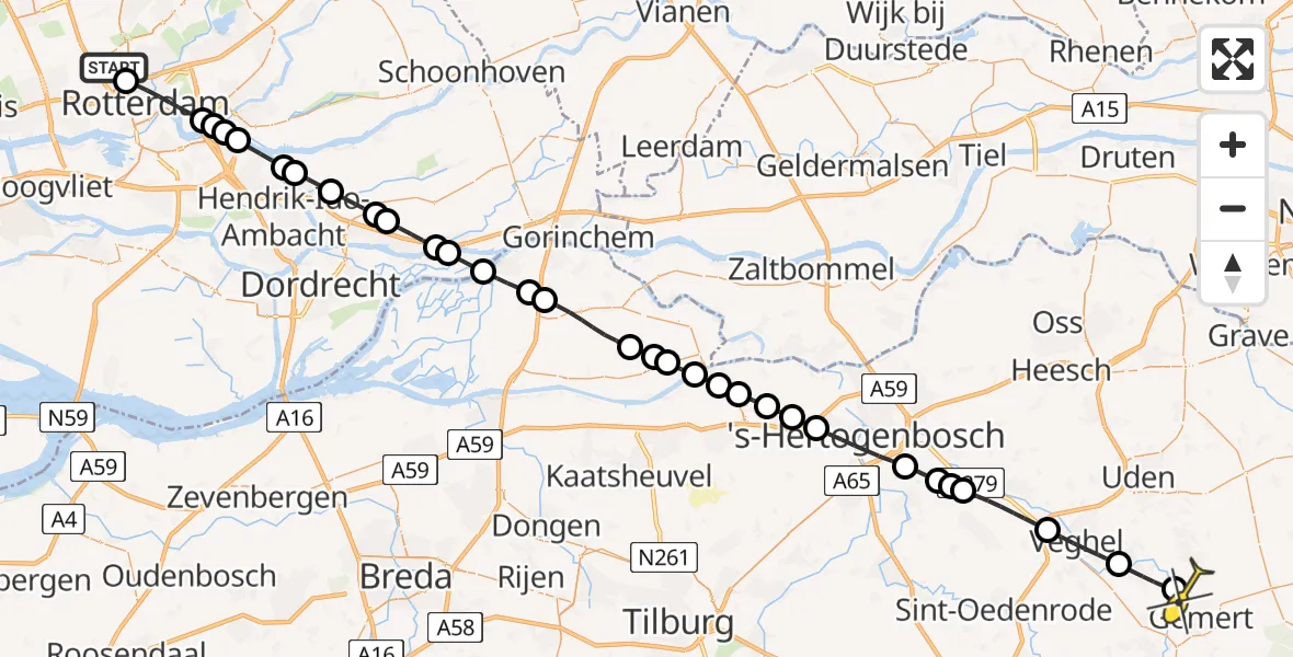 Op donderdag 26 juni 2025 om 20:04 is er een Traumahelikopter vertrokken van Rotterdam The Hague Airport naar Gemert. Het gaat om de Traumahelikopter met registratienummer PH-HVB. De vlucht duurde 24 minuten. Het toestel heeft in die periode 96 kilometer afgelegd met een gemiddelde snelheid van 239 kilometer per uur op een maximale vlieghoogte van 305 meter.