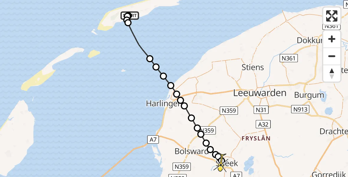 Op zaterdag 28 juni 2025 om 15:56 is er een Ambulancehelikopter vertrokken van Midsland naar Sneek. Het gaat om de Ambulancehelikopter met registratienummer PH-OOP. De vlucht duurde 16 minuten. Het toestel heeft in die periode 47 kilometer afgelegd met een gemiddelde snelheid van 180 kilometer per uur op een maximale vlieghoogte van 229 meter.