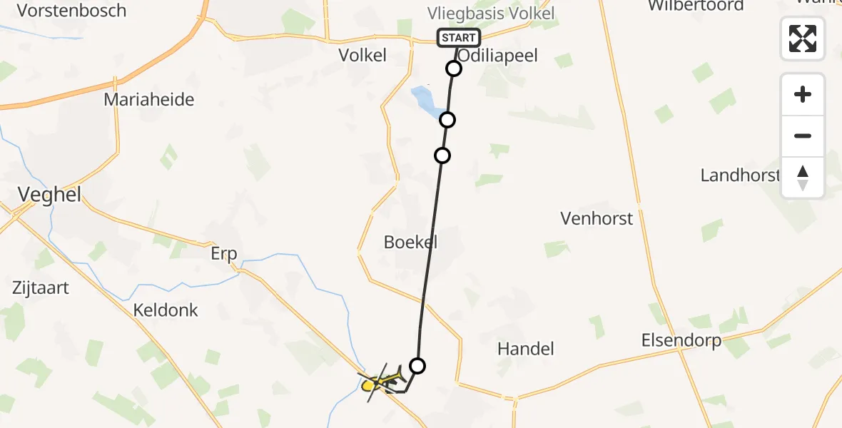 Op zaterdag 28 juni 2025 om 20:53 is er een Traumahelikopter vertrokken van Vliegbasis Volkel naar Gemert. Het gaat om de Traumahelikopter met registratienummer PH-LLN. De vlucht duurde 4 minuten. Het toestel heeft in die periode 10 kilometer afgelegd met een gemiddelde snelheid van 147 kilometer per uur op een maximale vlieghoogte van 229 meter.