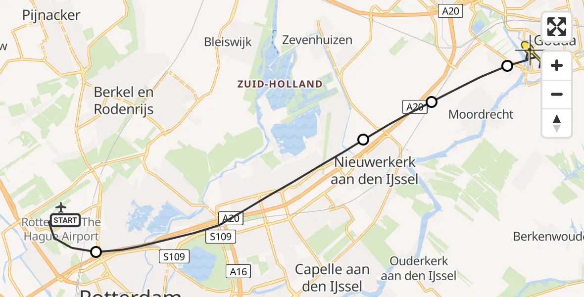 Op dinsdag 8 juli 2025 om 11:43 is er een Traumahelikopter vertrokken van Rotterdam The Hague Airport naar Gouda. Het gaat om de Traumahelikopter met registratienummer PH-MAA. De vlucht duurde 7 minuten. Het toestel heeft in die periode 23 kilometer afgelegd met een gemiddelde snelheid van 195 kilometer per uur op een maximale vlieghoogte van 259 meter.