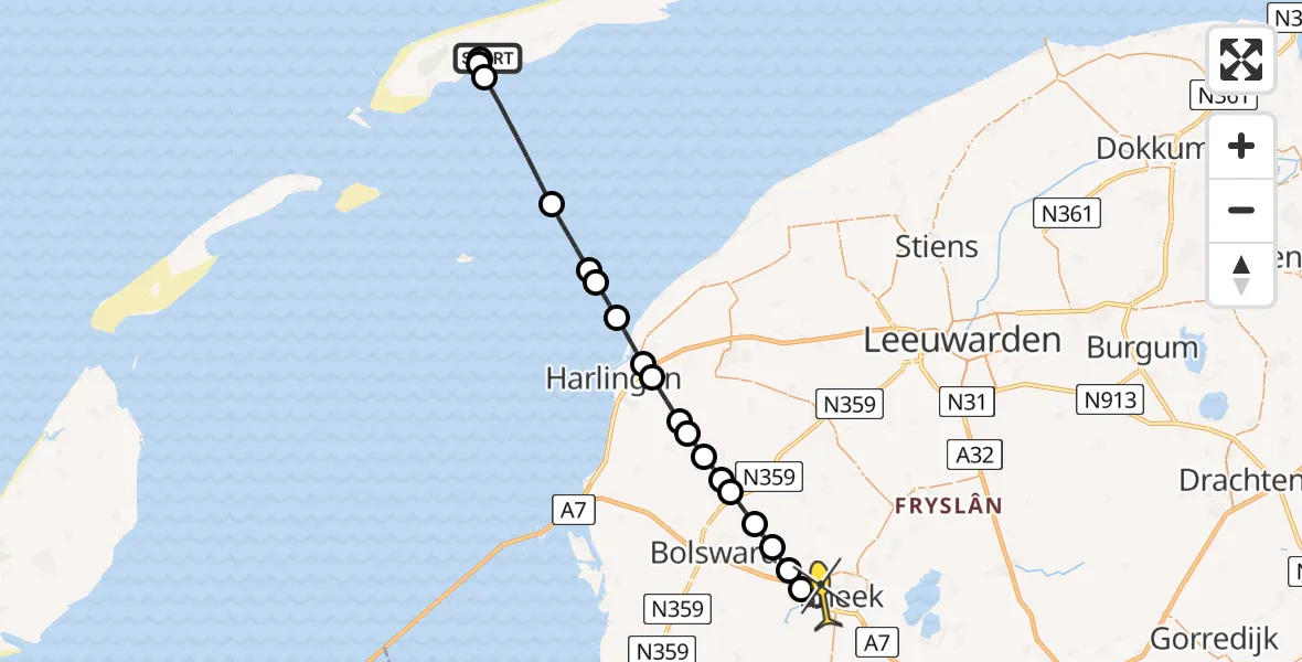 Routekaart van de vlucht: Ambulanceheli naar Sneek, Vijverspad