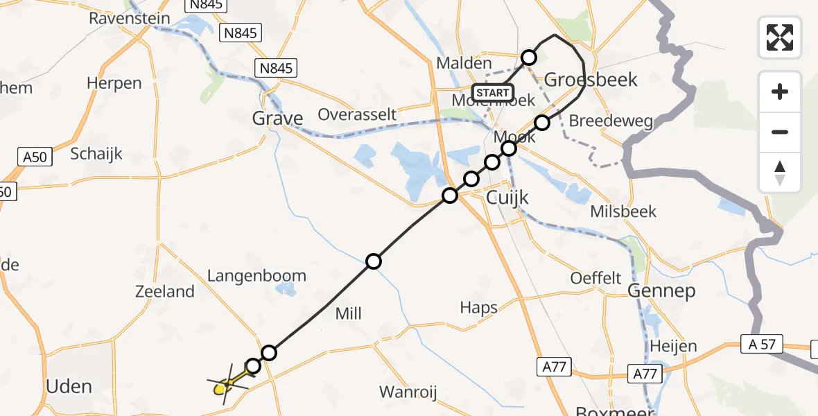 Op woensdag 9 juli 2025 om 21:40 is er een Traumahelikopter vertrokken van Molenhoek naar Volkel. Het gaat om de Traumahelikopter met registratienummer PH-LLN. De vlucht duurde 9 minuten. Het toestel heeft in die periode 25 kilometer afgelegd met een gemiddelde snelheid van 178 kilometer per uur op een maximale vlieghoogte van 137 meter.