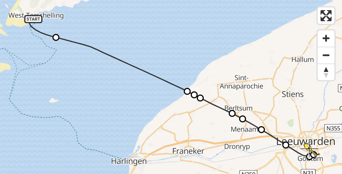 Op donderdag 10 juli 2025 om 3:08 is er een Ambulancehelikopter vertrokken van West-Terschelling naar Leeuwarden. Het gaat om de Ambulancehelikopter met registratienummer PH-OOP. De vlucht duurde 14 minuten. Het toestel heeft in die periode 47 kilometer afgelegd met een gemiddelde snelheid van 210 kilometer per uur op een maximale vlieghoogte van 305 meter.