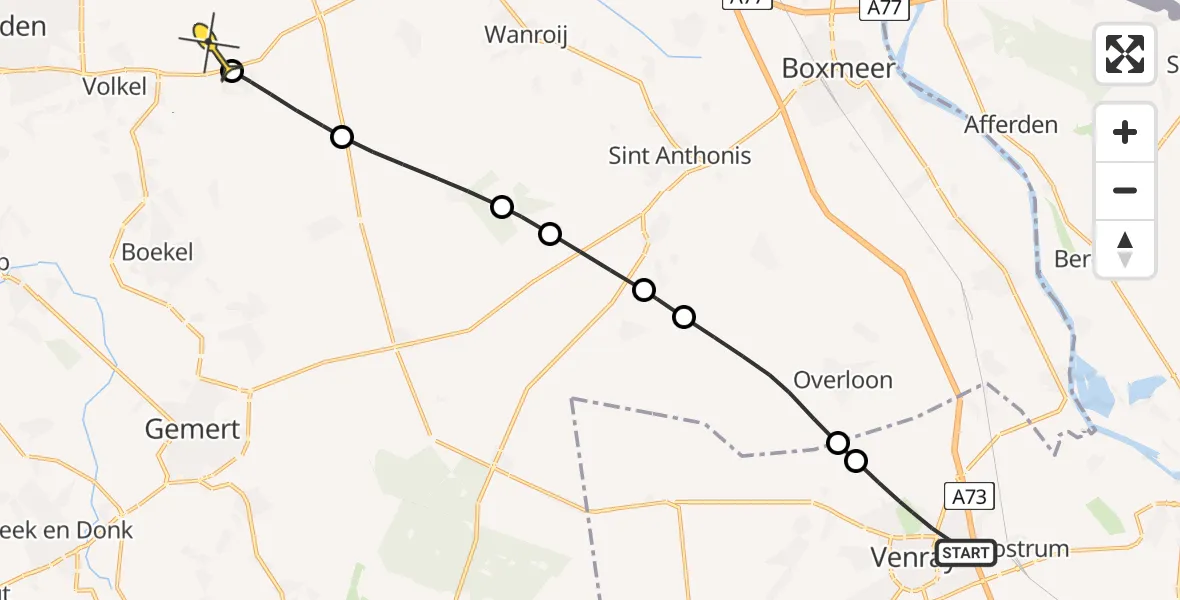 Op vrijdag 11 juli 2025 om 13:01 is er een Traumahelikopter vertrokken van Venray naar Vliegbasis Volkel. Het gaat om de Traumahelikopter met registratienummer PH-LLN. De vlucht duurde 8 minuten. Het toestel heeft in die periode 25 kilometer afgelegd met een gemiddelde snelheid van 179 kilometer per uur op een maximale vlieghoogte van 259 meter.