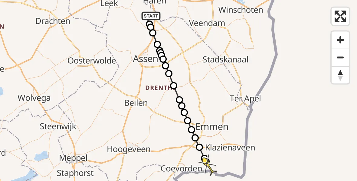 Op vrijdag 11 juli 2025 om 13:29 is er een Traumahelikopter vertrokken van Groningen Airport Eelde naar Schoonebeek. Het gaat om de Traumahelikopter met registratienummer PH-DOC. De vlucht duurde 15 minuten. Het toestel heeft in die periode 56 kilometer afgelegd met een gemiddelde snelheid van 230 kilometer per uur op een maximale vlieghoogte van 244 meter.