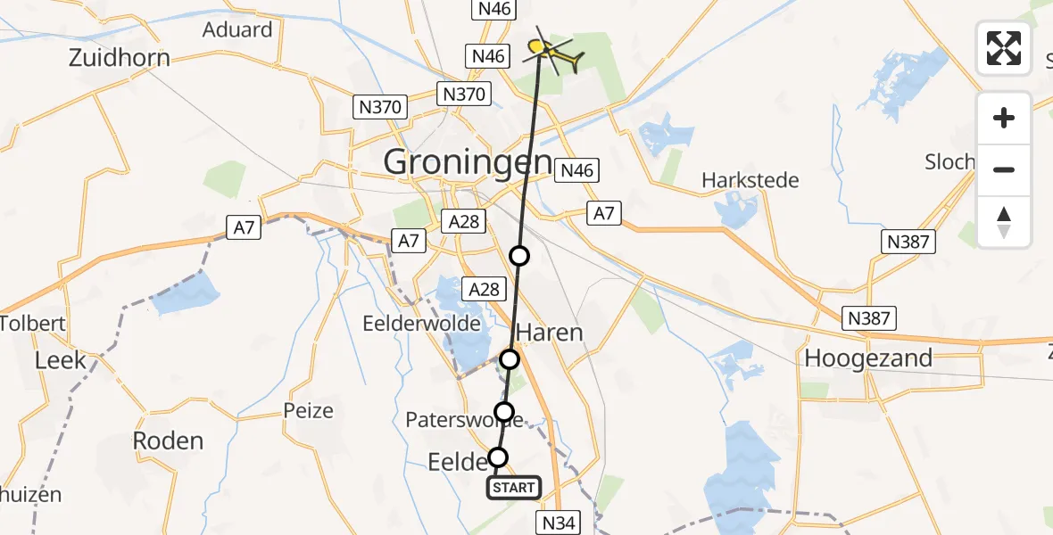 Op vrijdag 11 juli 2025 om 18:18 is er een Traumahelikopter vertrokken van Groningen Airport Eelde naar Groningen. Het gaat om de Traumahelikopter met registratienummer PH-DOC. De vlucht duurde 6 minuten. Het toestel heeft in die periode 15 kilometer afgelegd met een gemiddelde snelheid van 154 kilometer per uur op een maximale vlieghoogte van 198 meter.