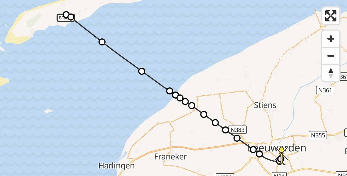 Op zaterdag 12 juli 2025 om 11:06 is er een Ambulancehelikopter vertrokken van Midsland naar Leeuwarden. Het gaat om de Ambulancehelikopter met registratienummer PH-OOP. De vlucht duurde 13 minuten. Het toestel heeft in die periode 42 kilometer afgelegd met een gemiddelde snelheid van 200 kilometer per uur op een maximale vlieghoogte van 290 meter.