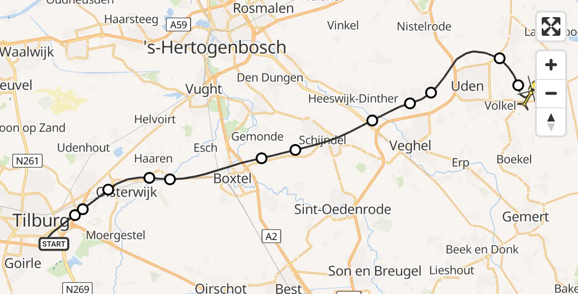 Op zaterdag 12 juli 2025 om 15:43 is er een Traumahelikopter vertrokken van Tilburg naar Vliegbasis Volkel. Het gaat om de Traumahelikopter met registratienummer PH-LLN. De vlucht duurde 15 minuten. Het toestel heeft in die periode 49 kilometer afgelegd met een gemiddelde snelheid van 201 kilometer per uur op een maximale vlieghoogte van 328 meter.