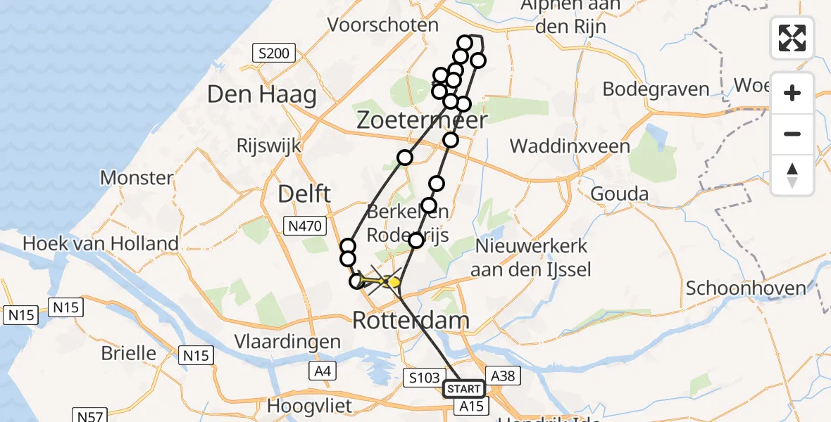 Op zaterdag 12 juli 2025 om 16:08 is er een Traumahelikopter vertrokken van Rotterdam naar Rotterdam The Hague Airport. Het gaat om de Traumahelikopter met registratienummer PH-MAA. De vlucht duurde 17 minuten. Het toestel heeft in die periode 58 kilometer afgelegd met een gemiddelde snelheid van 202 kilometer per uur op een maximale vlieghoogte van 328 meter.