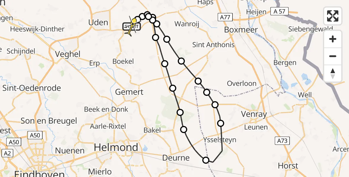 Op zaterdag 12 juli 2025 om 16:38 is er een Traumahelikopter vertrokken van Vliegbasis Volkel naar Vliegbasis Volkel. Het gaat om de Traumahelikopter met registratienummer PH-LLN. De vlucht duurde 18 minuten. Het toestel heeft in die periode 63 kilometer afgelegd met een gemiddelde snelheid van 216 kilometer per uur op een maximale vlieghoogte van 312 meter.