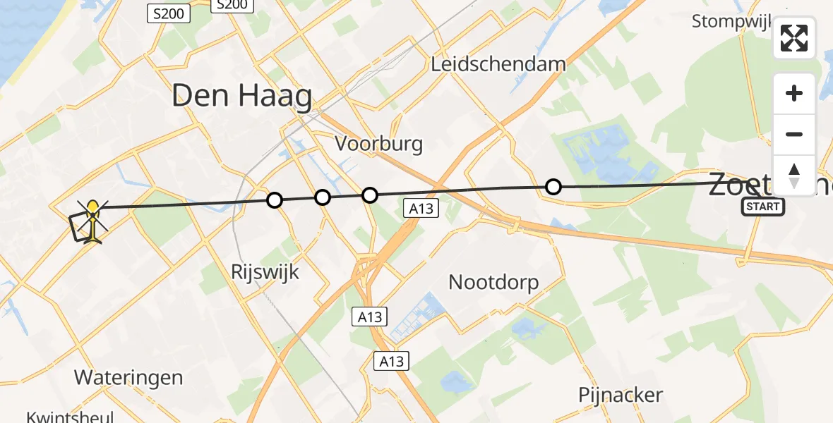 Op zondag 13 juli 2025 om 13:14 is er een Traumahelikopter vertrokken van Zoetermeer naar Den Haag. Het gaat om de Traumahelikopter met registratienummer PH-TTR. De vlucht duurde 7 minuten. Het toestel heeft in die periode 17 kilometer afgelegd met een gemiddelde snelheid van 148 kilometer per uur op een maximale vlieghoogte van 198 meter.