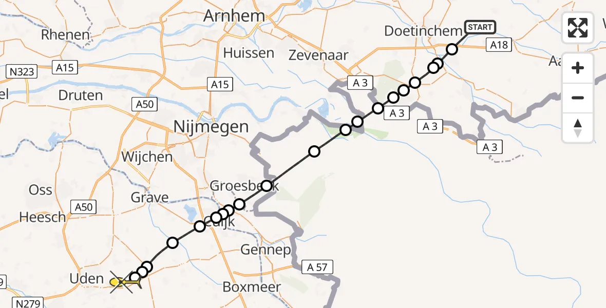Op zondag 13 juli 2025 om 14:16 is er een Traumahelikopter vertrokken van Doetinchem naar Vliegbasis Volkel. Het gaat om de Traumahelikopter met registratienummer PH-LLN. De vlucht duurde 18 minuten. Het toestel heeft in die periode 61 kilometer afgelegd met een gemiddelde snelheid van 201 kilometer per uur op een maximale vlieghoogte van 381 meter.