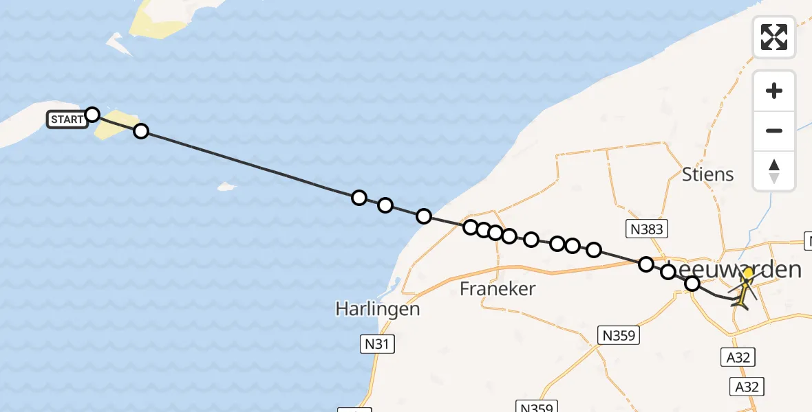 Op zondag 13 juli 2025 om 15:04 is er een Ambulancehelikopter vertrokken van Vlieland Heliport naar Leeuwarden. Het gaat om de Ambulancehelikopter met registratienummer PH-OOP. De vlucht duurde 16 minuten. Het toestel heeft in die periode 50 kilometer afgelegd met een gemiddelde snelheid van 194 kilometer per uur op een maximale vlieghoogte van 320 meter.