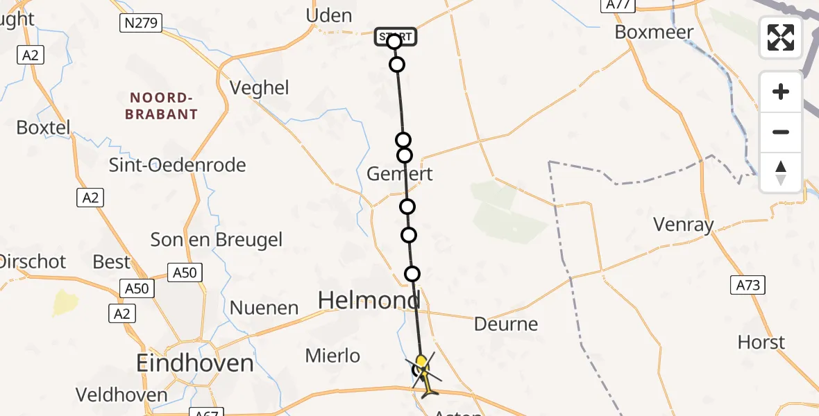 Op zondag 13 juli 2025 om 15:14 is er een Traumahelikopter vertrokken van Vliegbasis Volkel naar Ommel. Het gaat om de Traumahelikopter met registratienummer PH-LLN. De vlucht duurde 7 minuten. Het toestel heeft in die periode 25 kilometer afgelegd met een gemiddelde snelheid van 201 kilometer per uur op een maximale vlieghoogte van 312 meter.