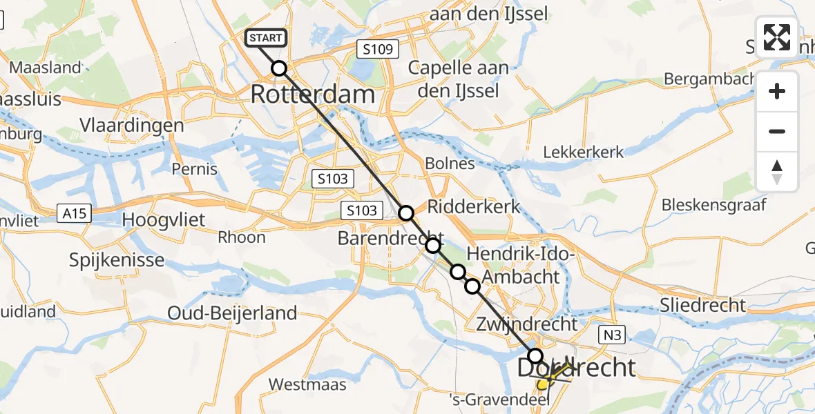 Routekaart van de vlucht: Lifeliner 2 naar Dordrecht, Tegelplaats