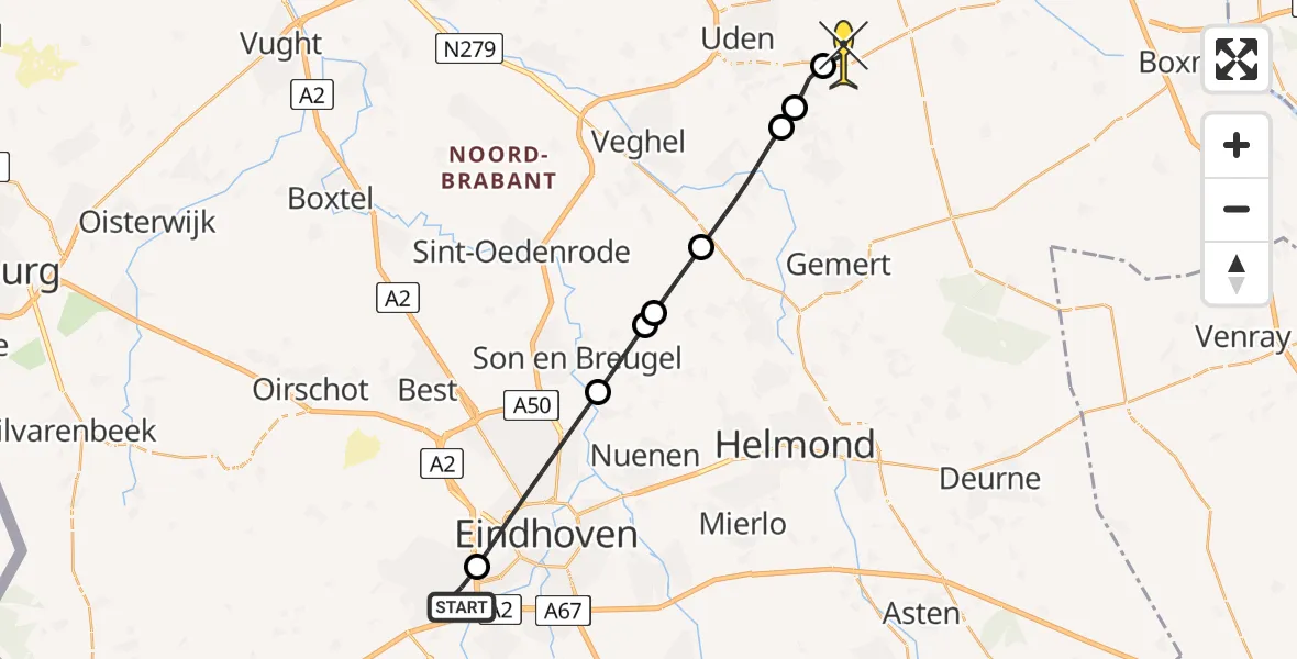 Op zondag 13 juli 2025 om 16:18 is er een Traumahelikopter vertrokken van Veldhoven naar Vliegbasis Volkel. Het gaat om de Traumahelikopter met registratienummer PH-LLN. De vlucht duurde 10 minuten. Het toestel heeft in die periode 34 kilometer afgelegd met een gemiddelde snelheid van 194 kilometer per uur op een maximale vlieghoogte van 404 meter.