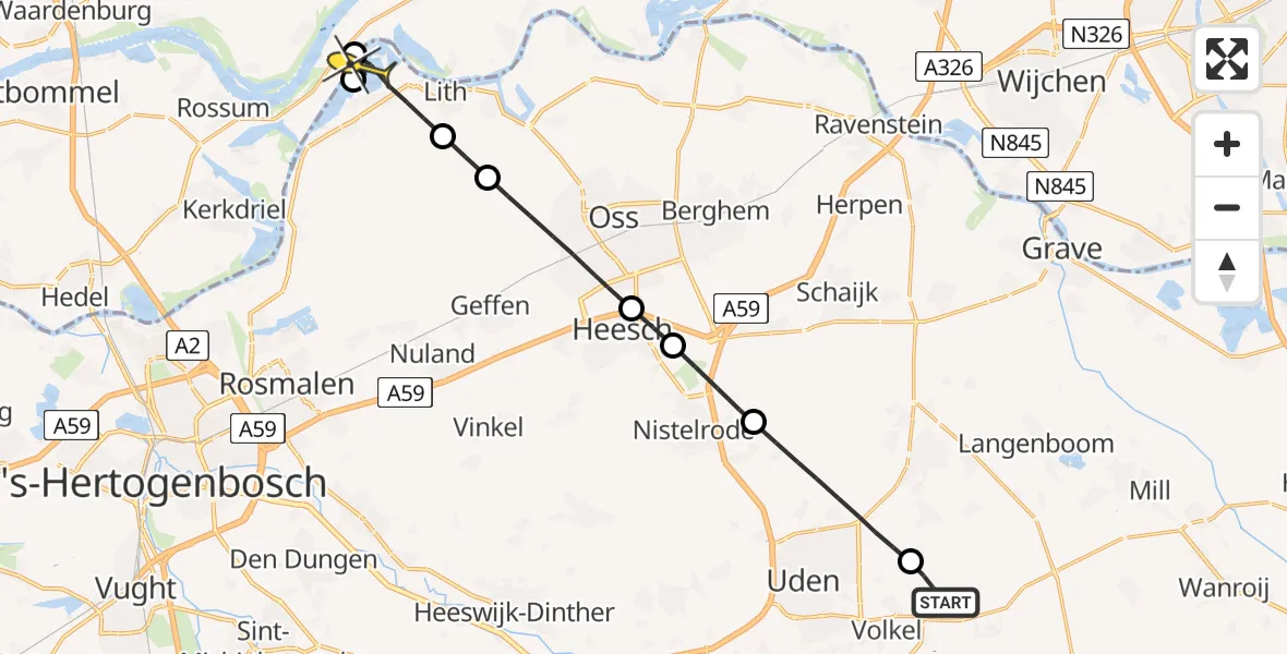 Op zondag 13 juli 2025 om 16:47 is er een Traumahelikopter vertrokken van Vliegbasis Volkel naar Lith. Het gaat om de Traumahelikopter met registratienummer PH-LLN. De vlucht duurde 9 minuten. Het toestel heeft in die periode 29 kilometer afgelegd met een gemiddelde snelheid van 198 kilometer per uur op een maximale vlieghoogte van 335 meter.