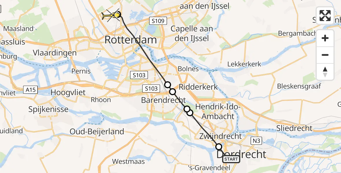 Op zondag 13 juli 2025 om 16:56 is er een Traumahelikopter vertrokken van Dordrecht naar Rotterdam The Hague Airport. Het gaat om de Traumahelikopter met registratienummer PH-MAA. De vlucht duurde 8 minuten. Het toestel heeft in die periode 24 kilometer afgelegd met een gemiddelde snelheid van 172 kilometer per uur op een maximale vlieghoogte van 343 meter.