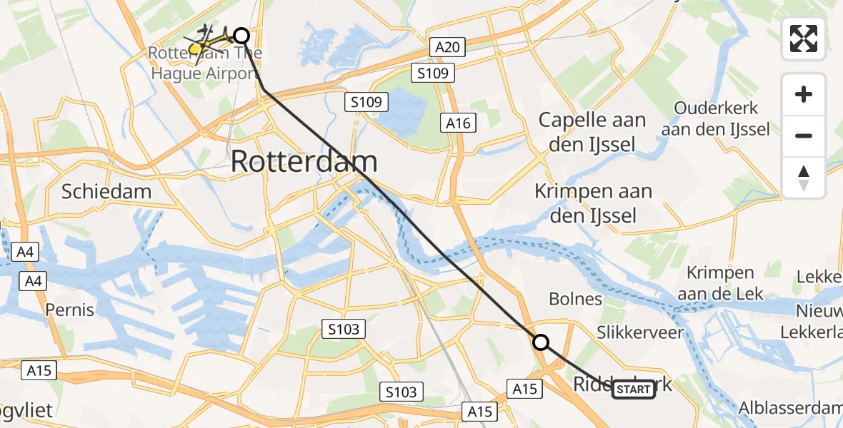 Op dinsdag 15 juli 2025 om 12:57 is er een Traumahelikopter vertrokken van Ridderkerk naar Rotterdam The Hague Airport. Het gaat om de Traumahelikopter met registratienummer PH-MAA. De vlucht duurde 6 minuten. Het toestel heeft in die periode 15 kilometer afgelegd met een gemiddelde snelheid van 159 kilometer per uur op een maximale vlieghoogte van 229 meter.